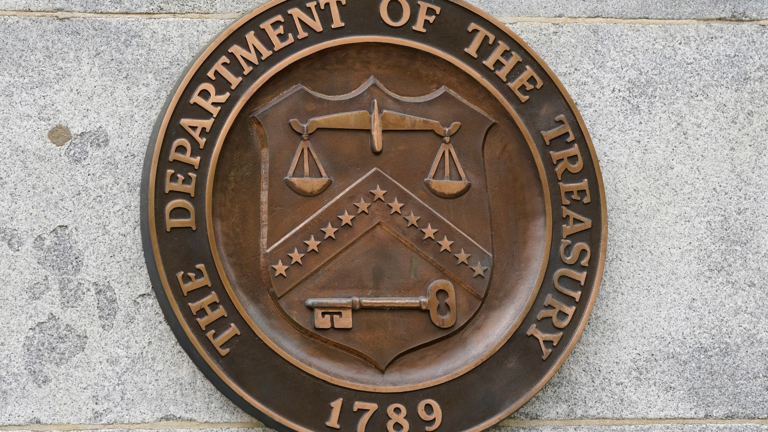 FILE – The Department of the Treasury’s seal outside the Treasury Department building in Washington on May 4, 2021. The national debt is at the core of a dispute about how to raise the government’s legal borrowing authority, which could come to a head this summer if the government runs out of accounting maneuvers to keep paying its bills. (AP Photo/Patrick Semansky, File)