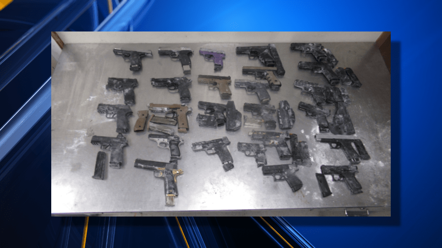 A photo provided by CBP showed that most of the 26 weapons were handguns.