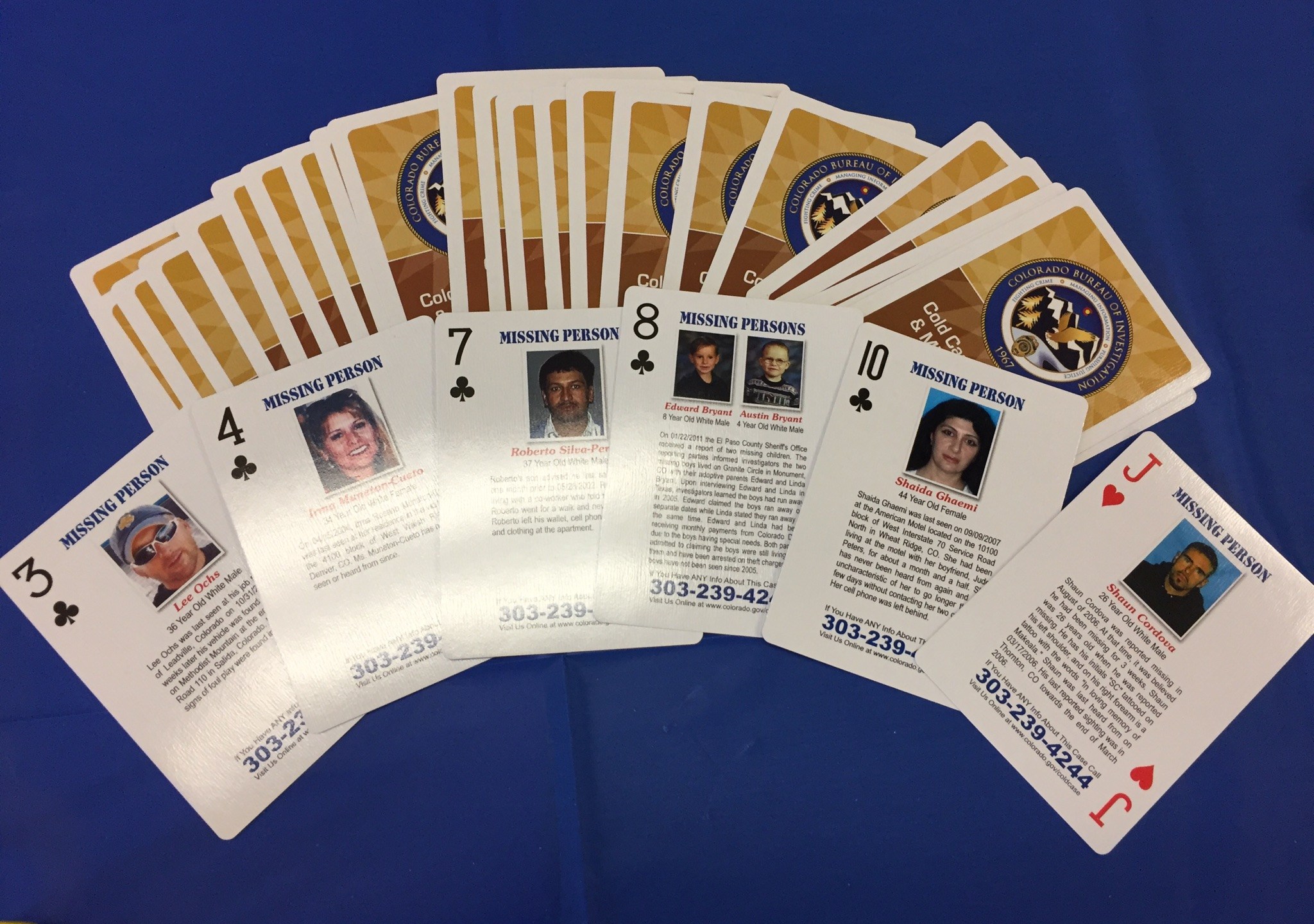 In Colorado alone, four decks have been circulating in local detention facilities, state and private prisons since 2014, according to CBI. Each of the four decks of cards features different cold cases, as there are thousands of missing and murdered people in Colorado.