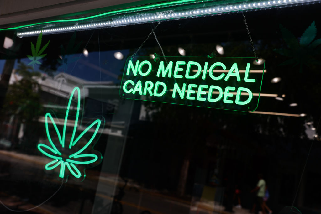'No medical card needed' sign is seen at a store in Key West, United States on May 7, 2024. (Photo by Jakub Porzycki/NurPhoto via Getty Images)