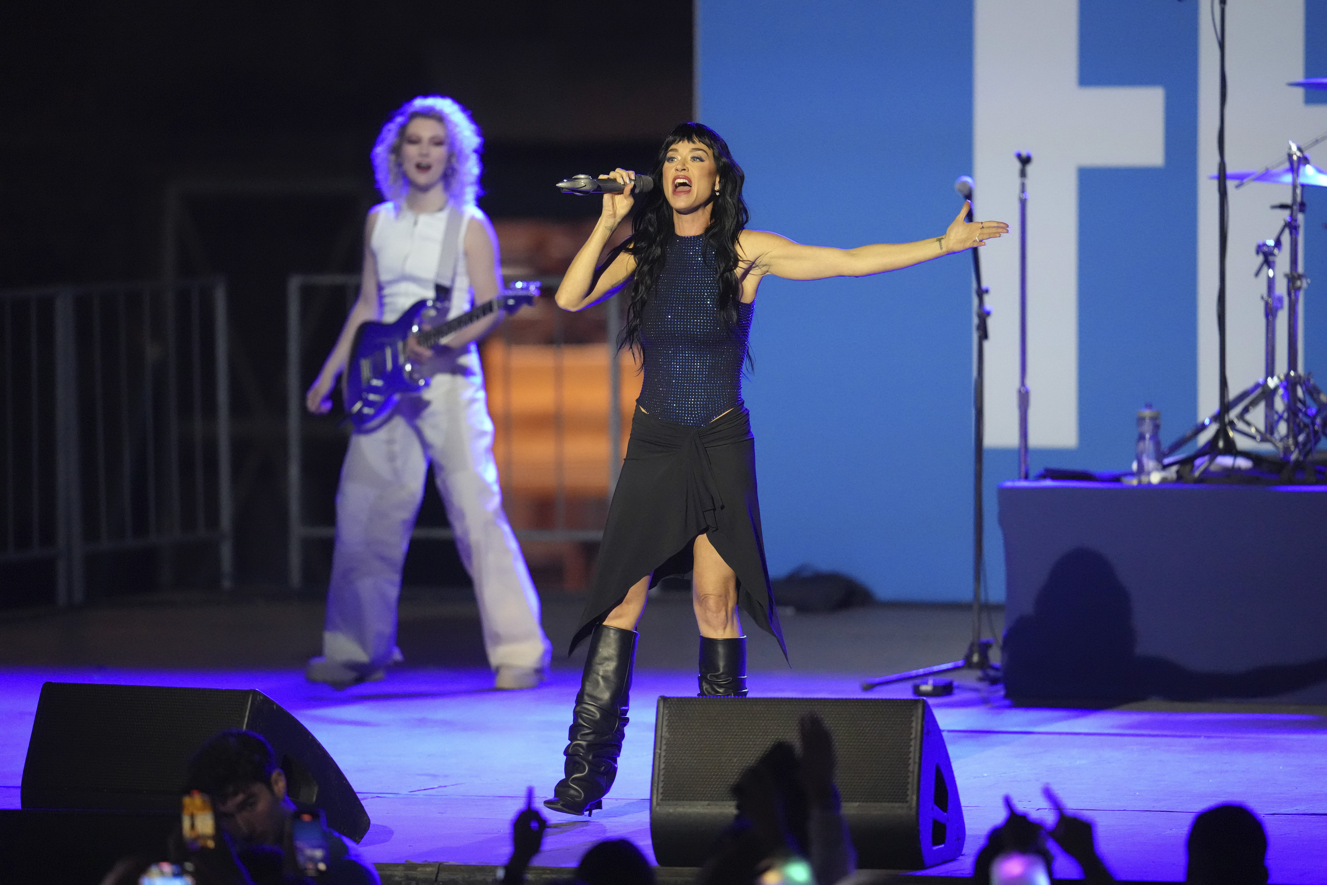 Pro-Palestinian protesters began chanting in the back, but the crowd drowned them out. Harris concluded her remarks at 9:13 p.m., as Katy Perry began performing “Dark Horse.”