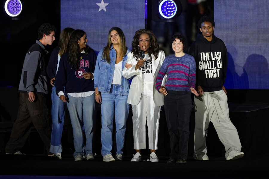 Harris’s husband, second gentleman Doug Emhoff, spoke before Oprah.