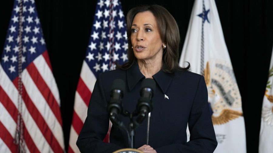 Democratic presidential nominee Vice President Kamala Harris speaks to members of the media, Oct. 1, 2024, in Washington.