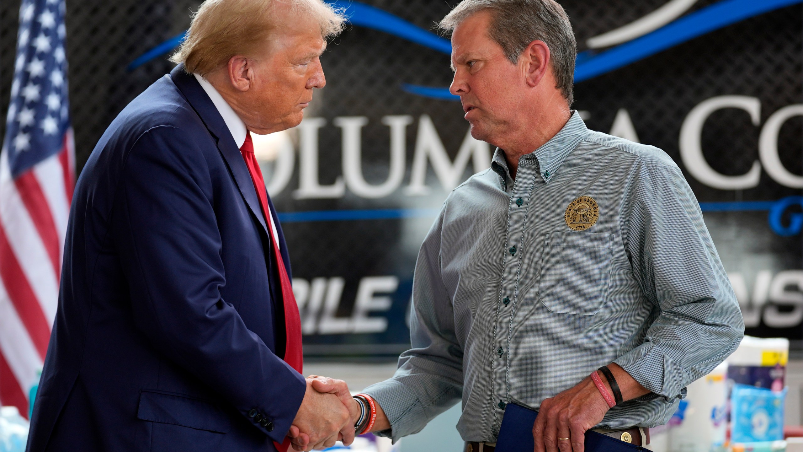 Kemp, before Trump spoke, thanked the former president for “keeping the national focus on our state as we recover.”