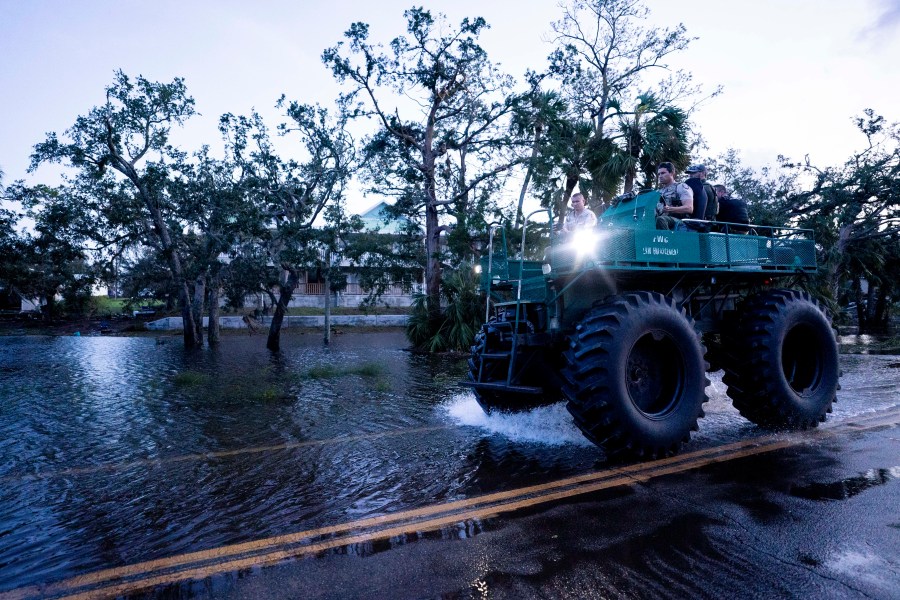 STEINHATCHEE, FLORIDA – SEPTEMBER 27: Members of law enforcement use a special vehicle in the aftermath of Hurricane Helene on September 27, 2024 near Steinhatchee, Florida. Hurricane Helene made landfall nearby last night as a category four storm but has weakened as it moves inland. (Photo by Sean Rayford/Getty Images)