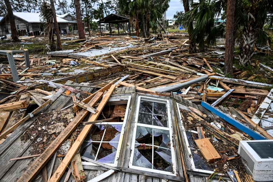 Debris of damaged houses are seen after Hurricane Helene made landfall in Horseshoe Beach, Florida, on September 28, 2024. At least 44 people died across five US states battered by powerful storm Helene, authorities said on September 27, after torrential flooding prompted emergency responders to launch massive rescue operations. (Photo by CHANDAN KHANNA / AFP) (Photo by CHANDAN KHANNA/AFP via Getty Images)
