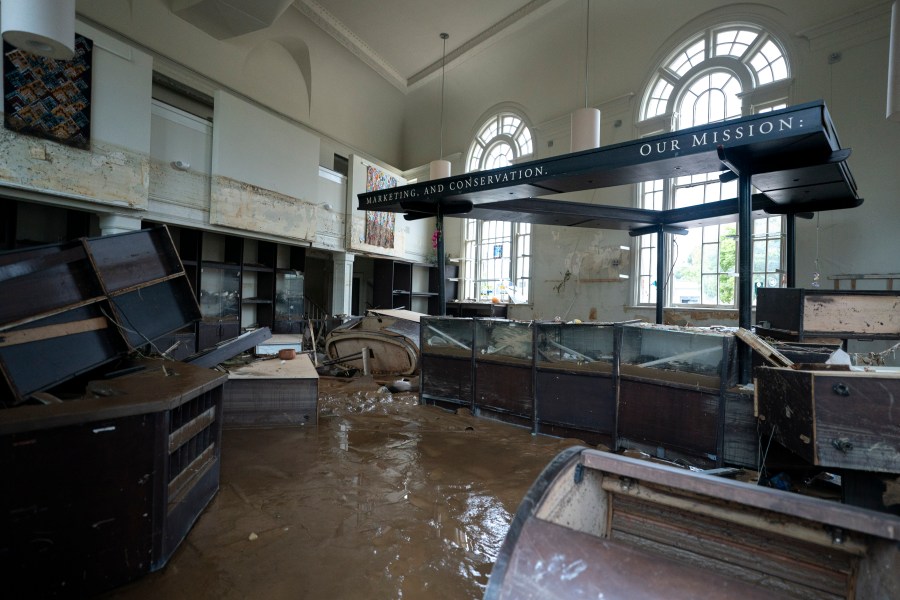 ASHEVILLE, NORTH CAROLINA – SEPTEMBER 28: Flood damage inside a building in the Biltmore Village in the aftermath of Hurricane Helene on September 28, 2024 in Asheville, North Carolina. Hurricane Helene made landfall Thursday night in Florida’s Big Bend with winds up to 140 mph. (Photo by Sean Rayford/Getty Images)