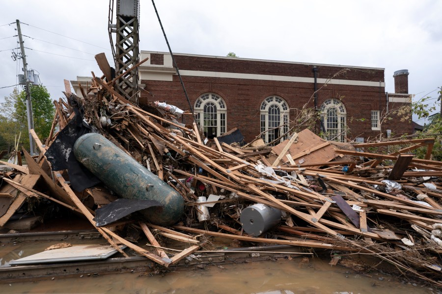 ASHEVILLE, NORTH CAROLINA – SEPTEMBER 29: Flood damage is strewn across a road in the aftermath of Hurricane Helene on September 29, 2024 in Asheville, North Carolina. According to reports, more than 60 people have been killed across the South due to the storm, and millions have been left without power. North Carolina has been approved for a Federal Major Disaster Declaration. (Photo by Sean Rayford/Getty Images)
