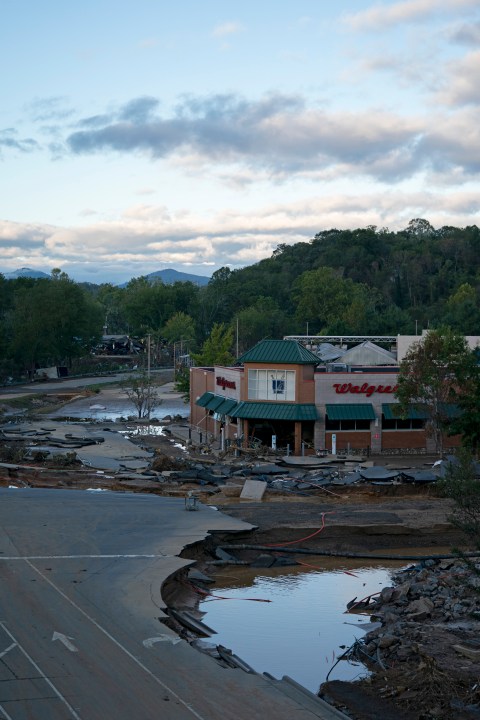 ASHEVILLE, NORTH CAROLINA – SEPTEMBER 28: Heavy rains from Hurricane Helene caused record flooding and damage on September 28, 2024 in Asheville, North Carolina. Hurricane Helene made landfall in Florida’s Big Bend on Thursday night with winds up to 140 mph and storm surges that killed at least 42 people in several states. (Photo by Melissa Sue Gerrits/Getty Images)