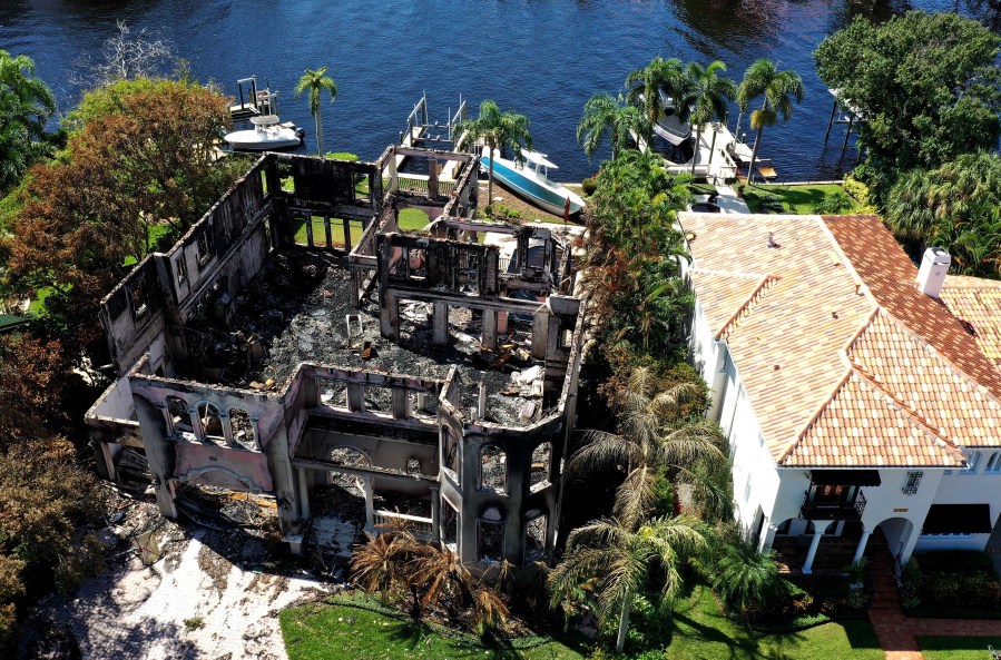 TAMPA, FLORIDA, UNITED STATES – SEPTEMBER 29: A view of a home that was destroyed by fire as a result of storm surge as Hurricane Helene passed off shore in the Davis Islands neighborhood on September 29, 2024 in Tampa, Florida. Hurricane Helene made landfall as a Category 4 storm Thursday night in Florida’s Big Bend with winds of up to 140 miles per hour and storm surges that killed at least 64 people in several states. (Photo by Paul Hennessy/Anadolu via Getty Images)