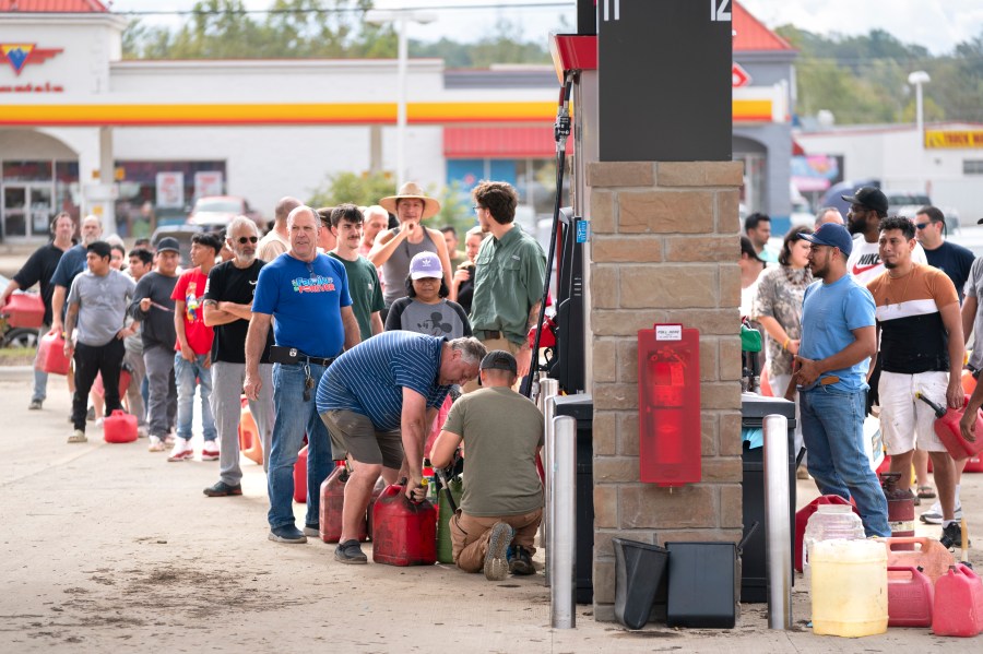 FLETCHER, NORTH CAROLINA – SEPTEMBER 29: People wait on others to pump gasoline in the aftermath of Hurricane Helene on September 29, 2024 in Fletcher, North Carolina. At least 90 people have been killed across the southeastern U.S. due to the hurricane, according to published reports, which made landfall as a category 4 storm on Thursday. Millions are without power, according to the reports. The White House declared major disasters in North Carolina and Florida, freeing up federal emergency management money for those areas. (Photo by Sean Rayford/Getty Images)