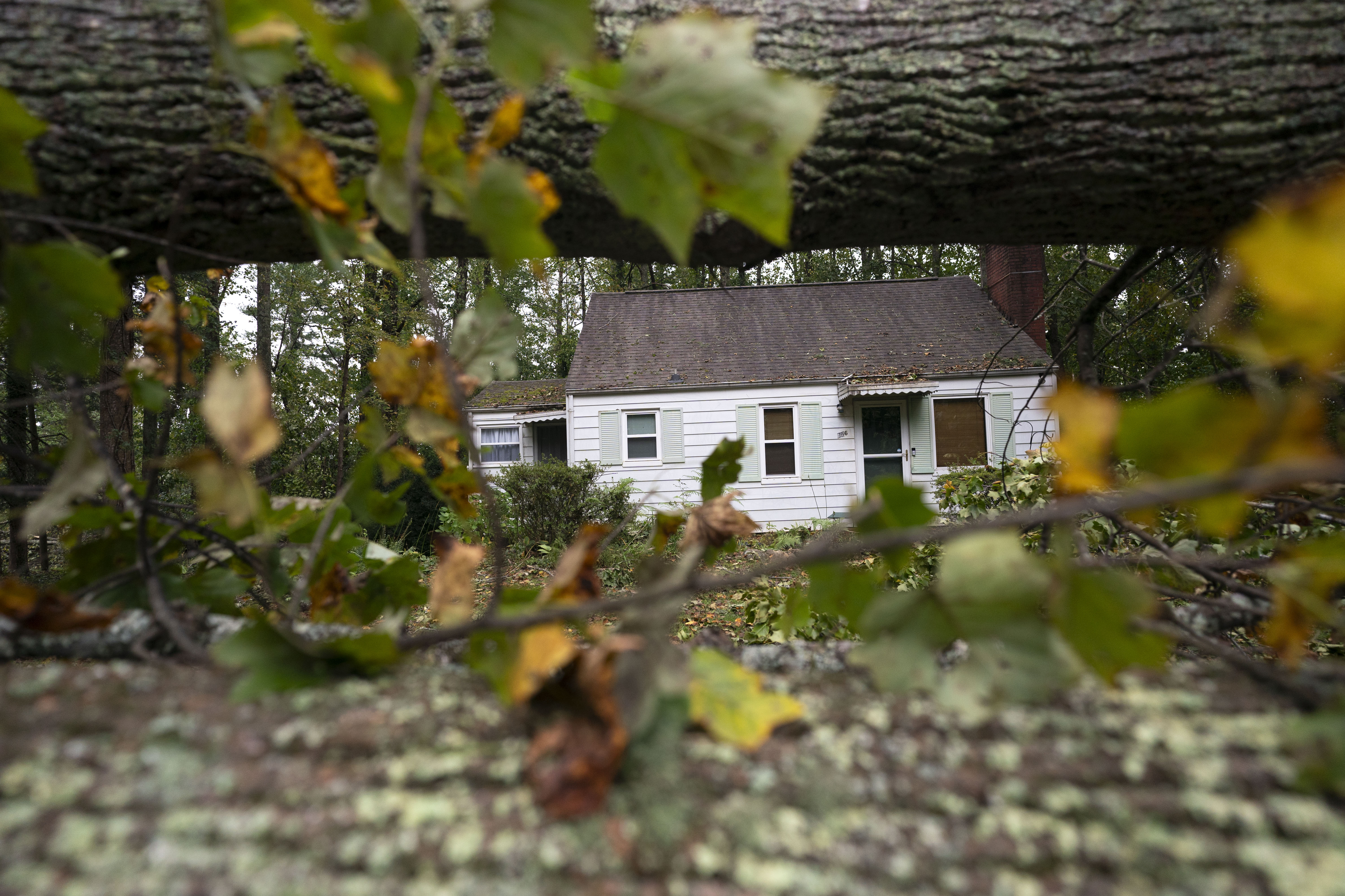 ASHEVILLE, NORTH CAROLINA – SEPTEMBER 28: A fallen tree on a home in the aftermath of Hurricane Helene on September 28, 2024 in Asheville, North Carolina. Hurricane Helene made landfall Thursday night in Florida’s Big Bend with winds up to 140 mph. (Photo by Sean Rayford/Getty Images)