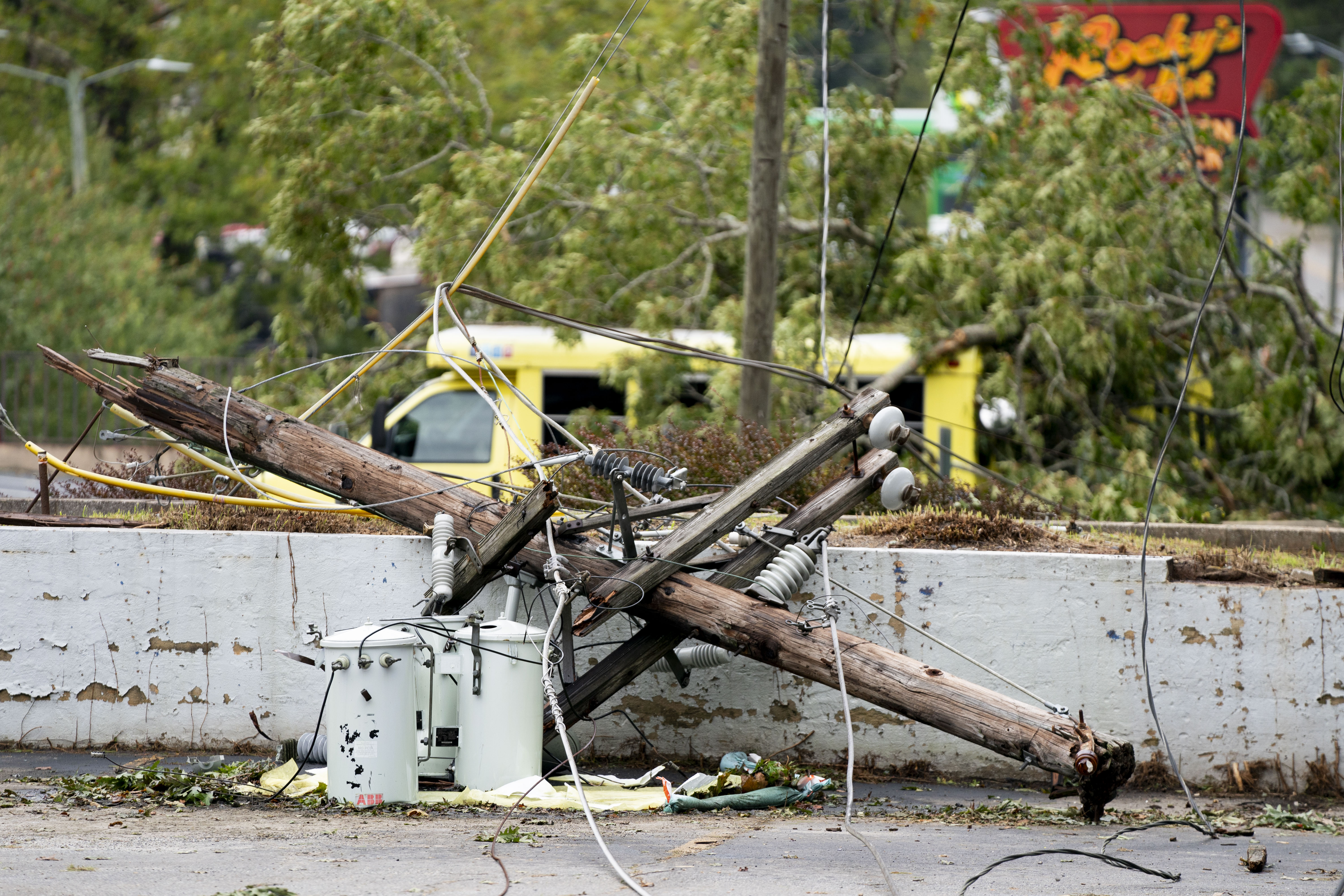 ASHEVILLE, NORTH CAROLINA – SEPTEMBER 28: A broken utility pole in the aftermath of Hurricane Helene on September 28, 2024 in Asheville, North Carolina. Hurricane Helene made landfall Thursday night in Florida’s Big Bend with winds up to 140 mph. (Photo by Sean Rayford/Getty Images)