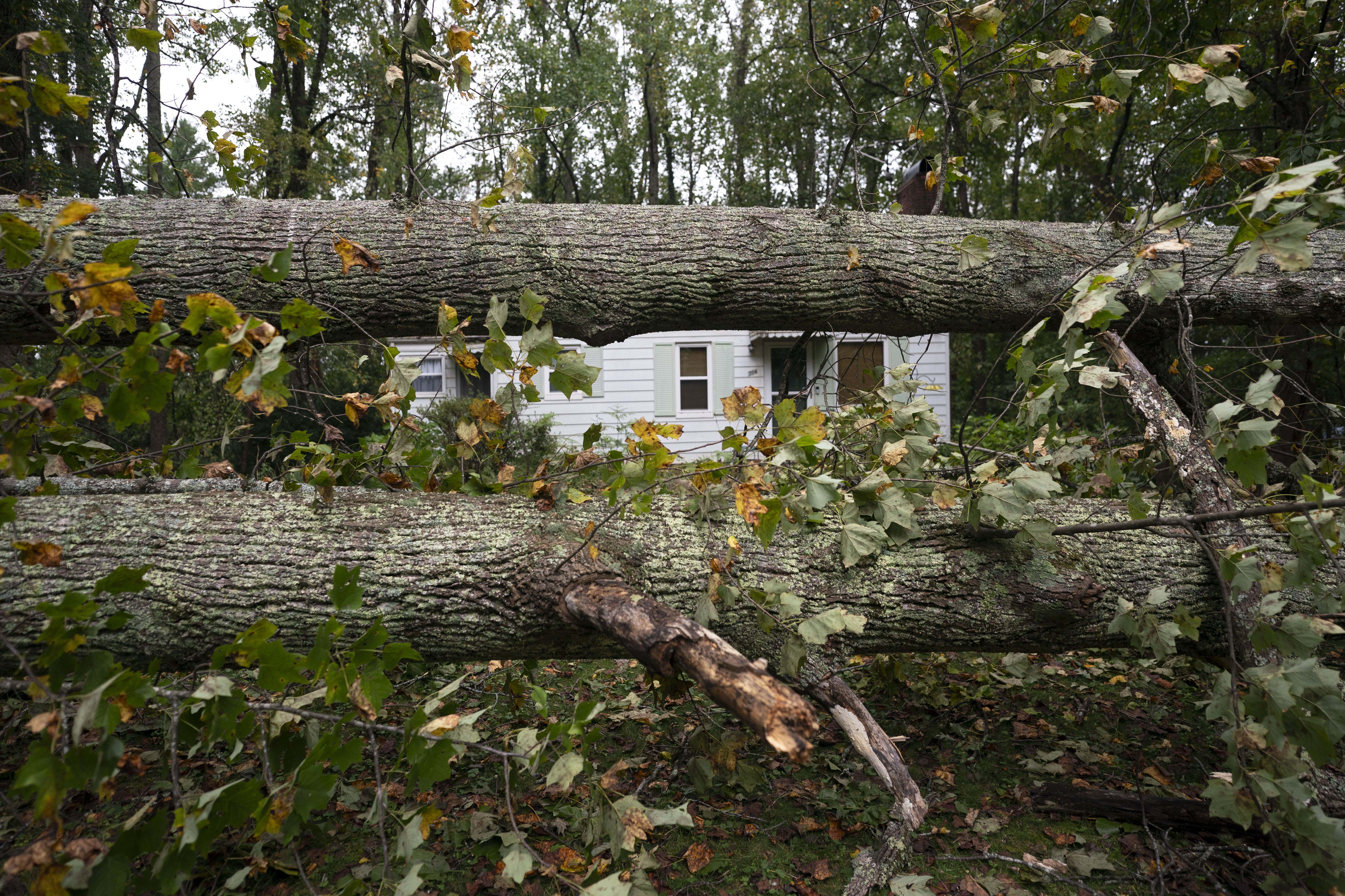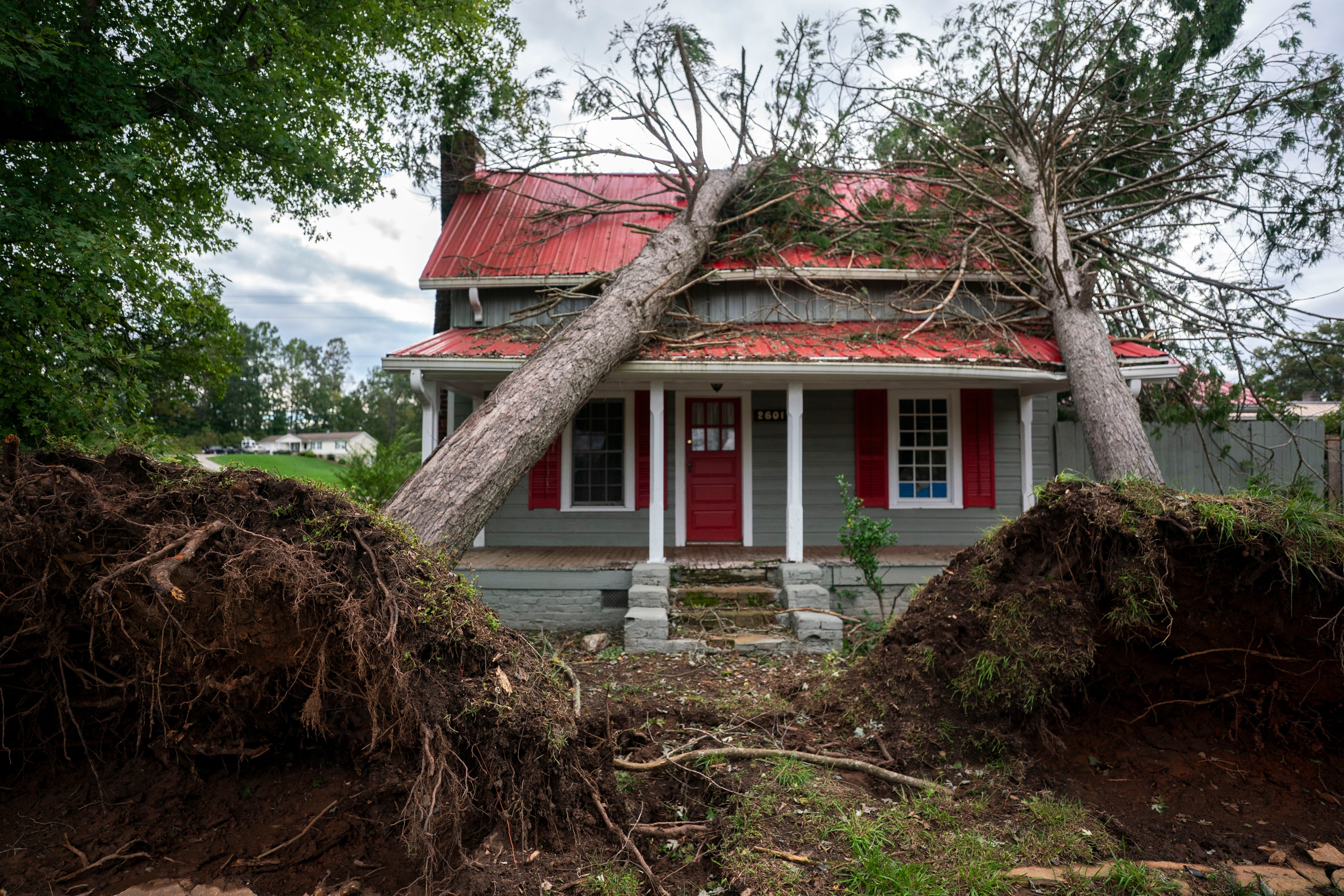 RUTHERFORDTON, NORTH CAROLINA – SEPTEMBER 29: Downed trees on a home in the aftermath of Hurricane Helene on September 29, 2024 in Rutherfordton, North Carolina. At least 90 people have been killed across the southeastern U.S. due to the hurricane, according to published reports, which made landfall as a category 4 storm on Thursday. Millions are without power, according to the reports. The White House declared major disasters in North Carolina and Florida, freeing up federal emergency management money for those areas. (Photo by Sean Rayford/Getty Images)