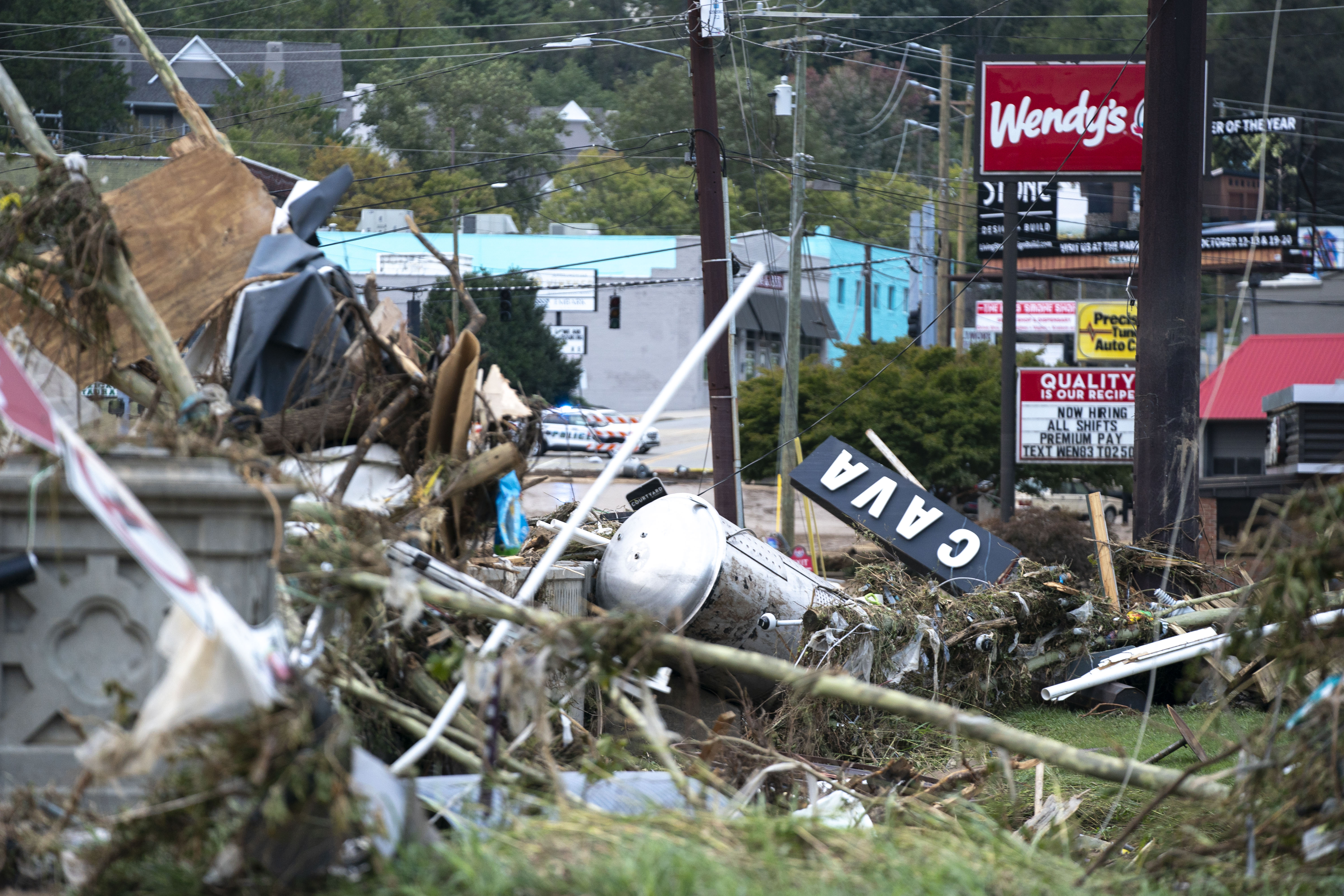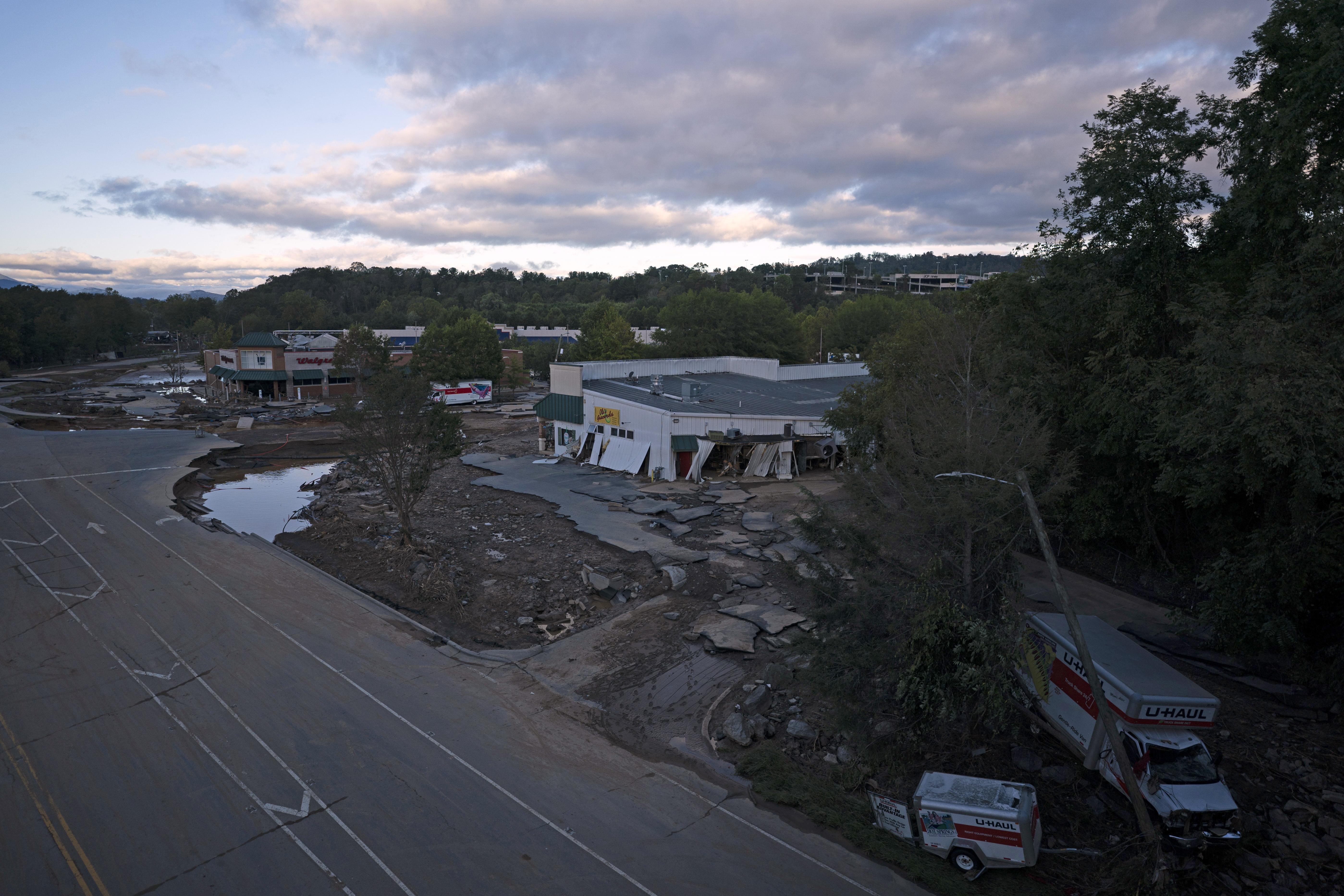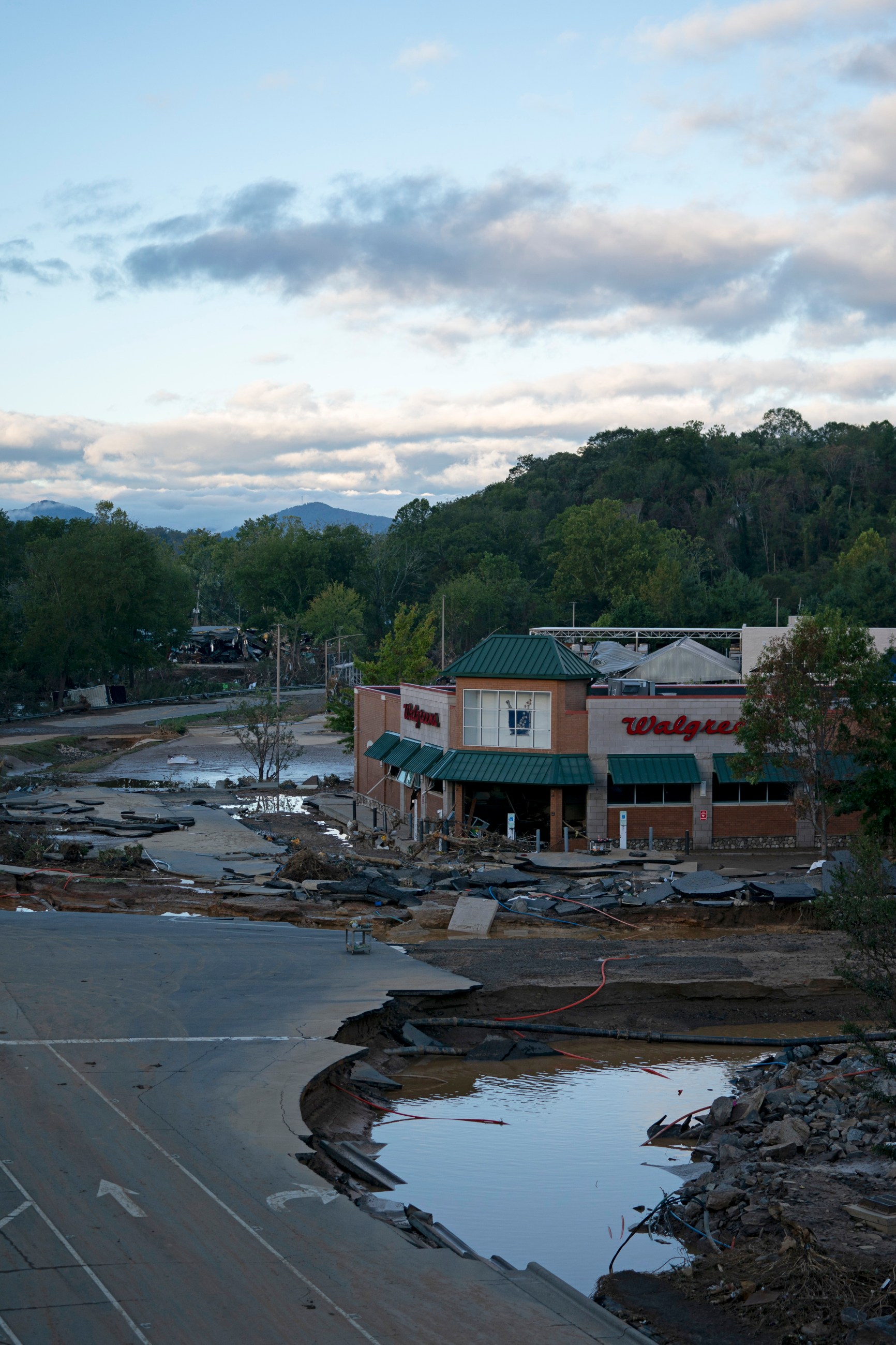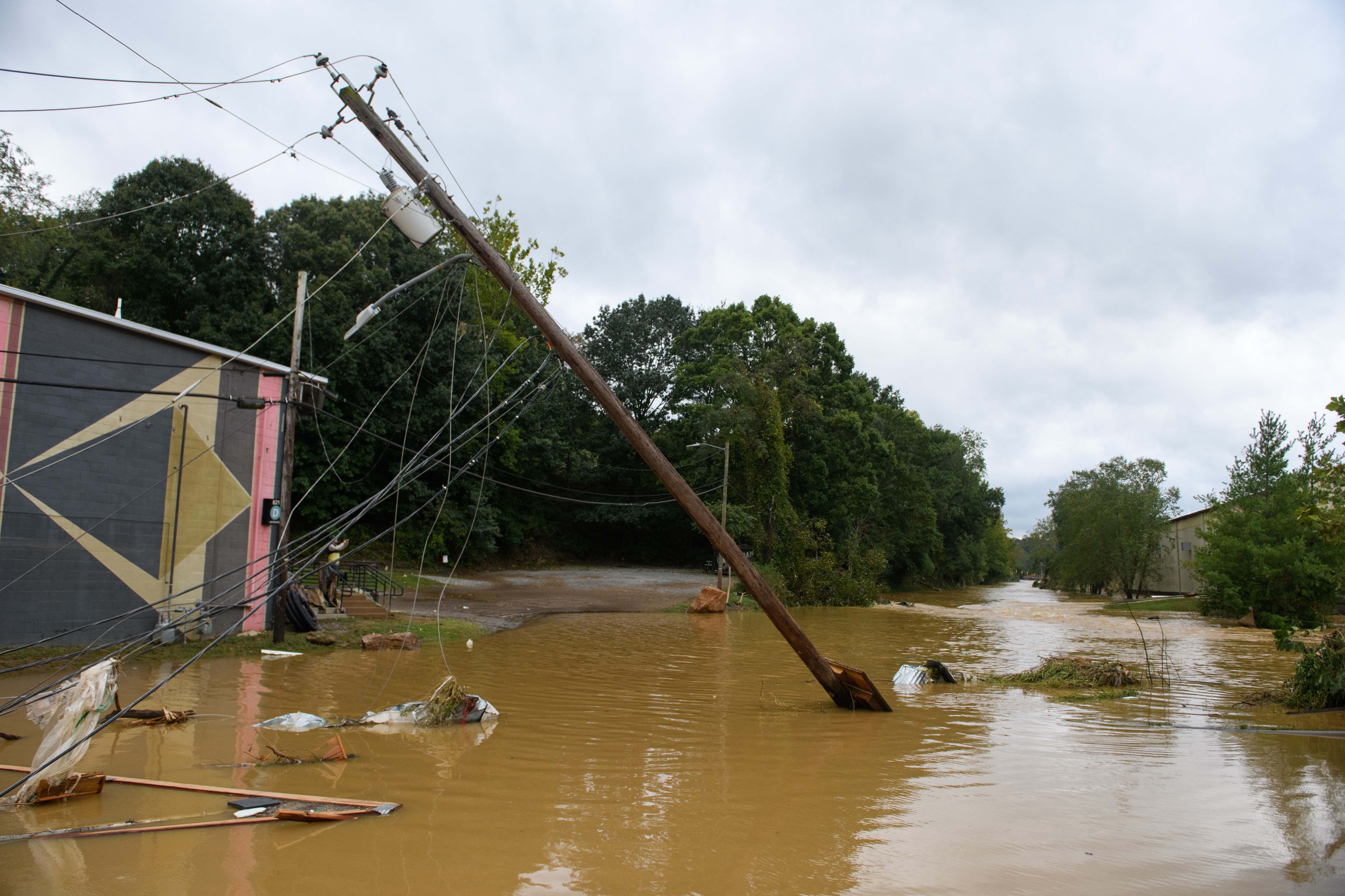 What was once a thriving mountainous city in North Carolina, glistening with art and historic architecture, is now a wasteland of splintered houses, crushed cargo containers and mud-covered highways.