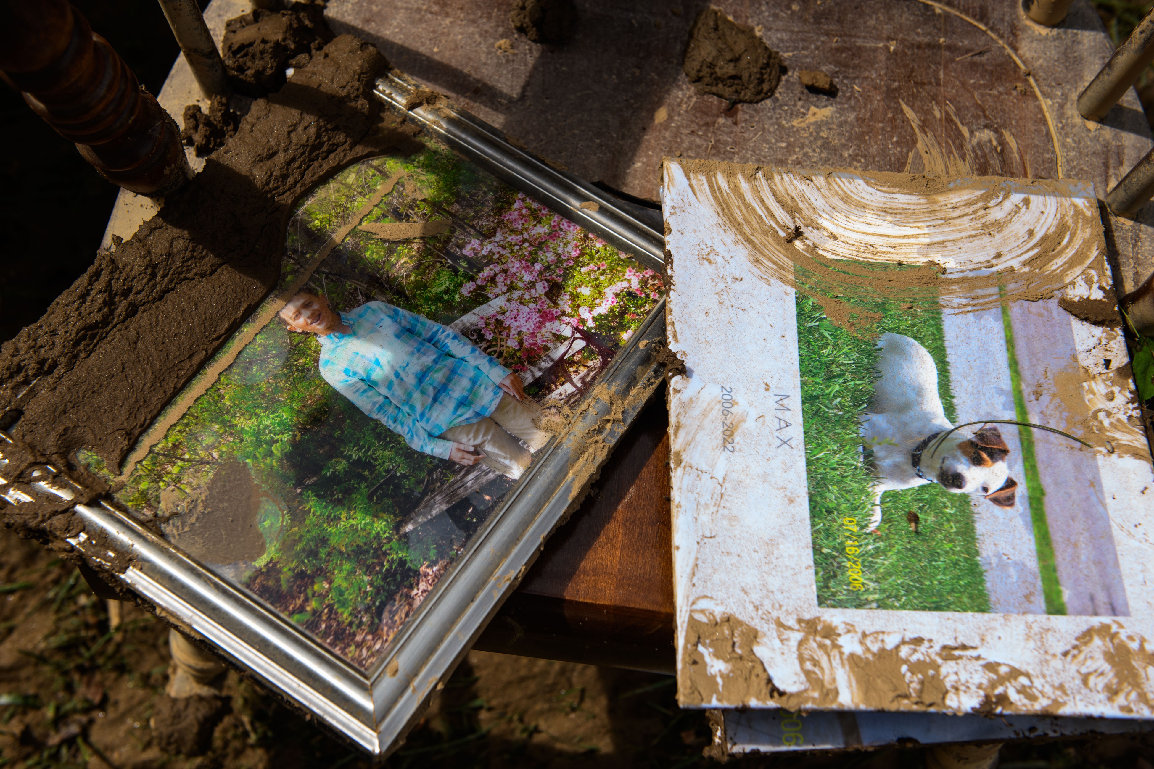 OLD FORT, NORTH CAROLINA – SEPTEMBER 29: Keep sakes belonging to Terry Wilson lay outside his mother’s home in the aftermath of Hurricane Helene on September 29, 2024 in Old Fort, North Carolina. Wilson said their beloved dog’s ashes were found after the flooding. According to reports, more than 60 people have been killed across the South due to the storm, and millions have been left without power. North Carolina has been approved for a Federal Major Disaster Declaration. (Photo by Melissa Sue Gerrits/Getty Images)