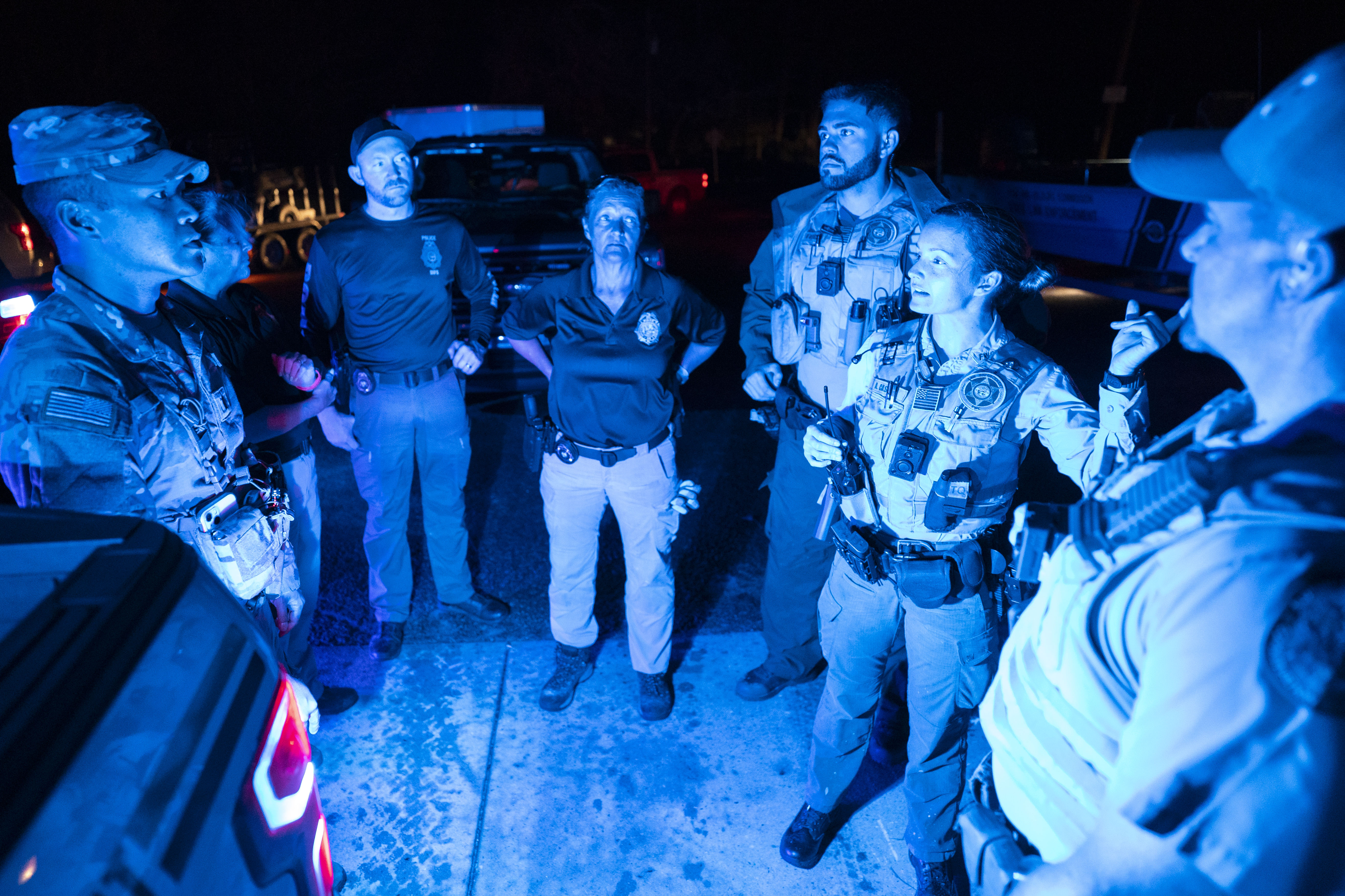 STEINHATCHEE, FLORIDA – SEPTEMBER 27: Emergency responders share information in the aftermath of Hurricane Helene on September 27, 2024 near Steinhatchee, Florida. Hurricane Helene made landfall nearby last night as a category four storm but has weakened as it moves inland. (Photo by Sean Rayford/Getty Images)