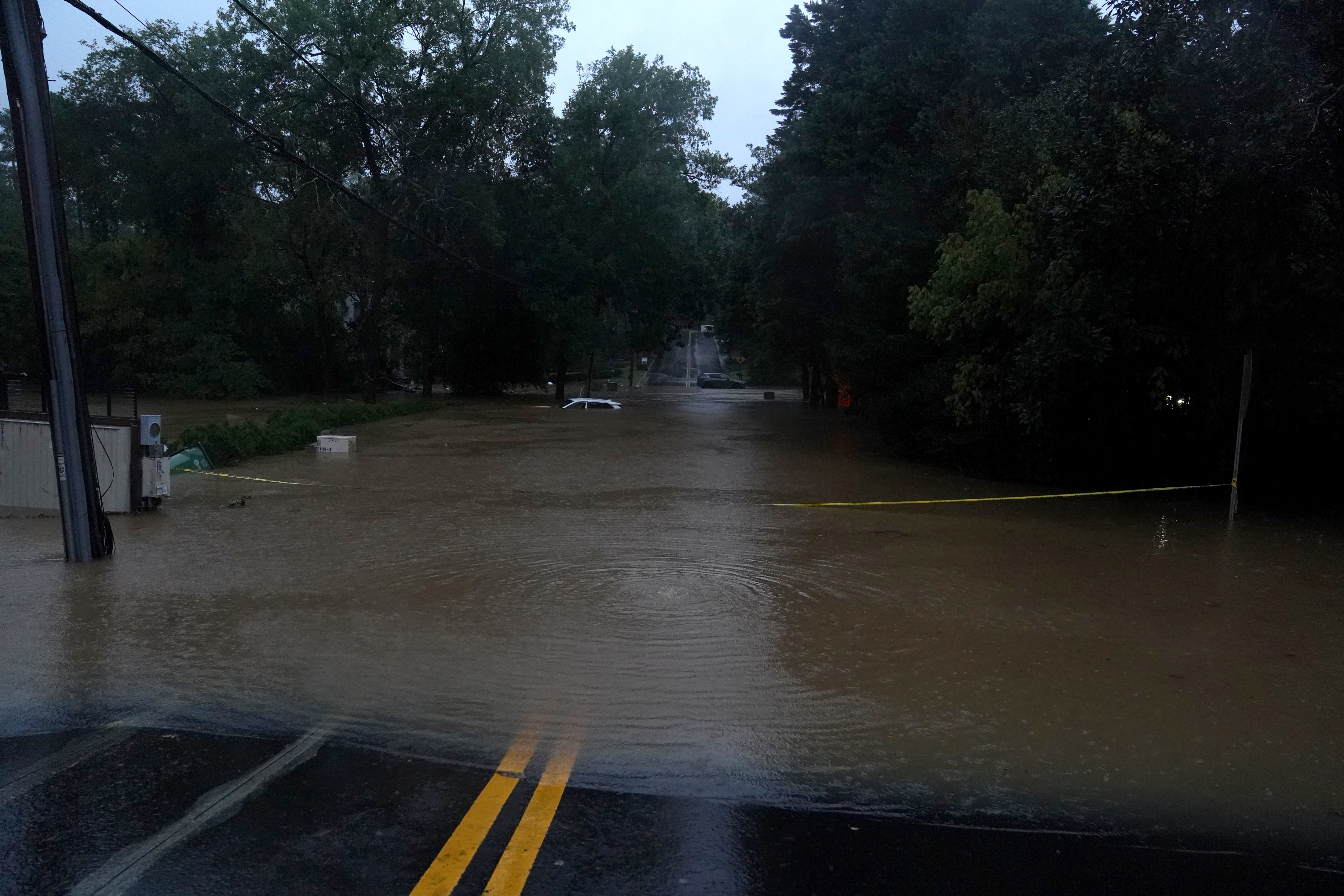 ATLANTA, GEORGIA – SEPTEMBER 27: Floodwaters in the Buckhead neighborhood in the aftermath of Hurricane Helene on September 27, 2024 in Atlanta, Georgia. Hurricane Helene made landfall in Florida’s Big Bend region as a category four hurricane, and has brought flooding inland as the storm system moves over Georgia, heading into the Carolinas. (Photo by Megan Varner/Getty Images)
