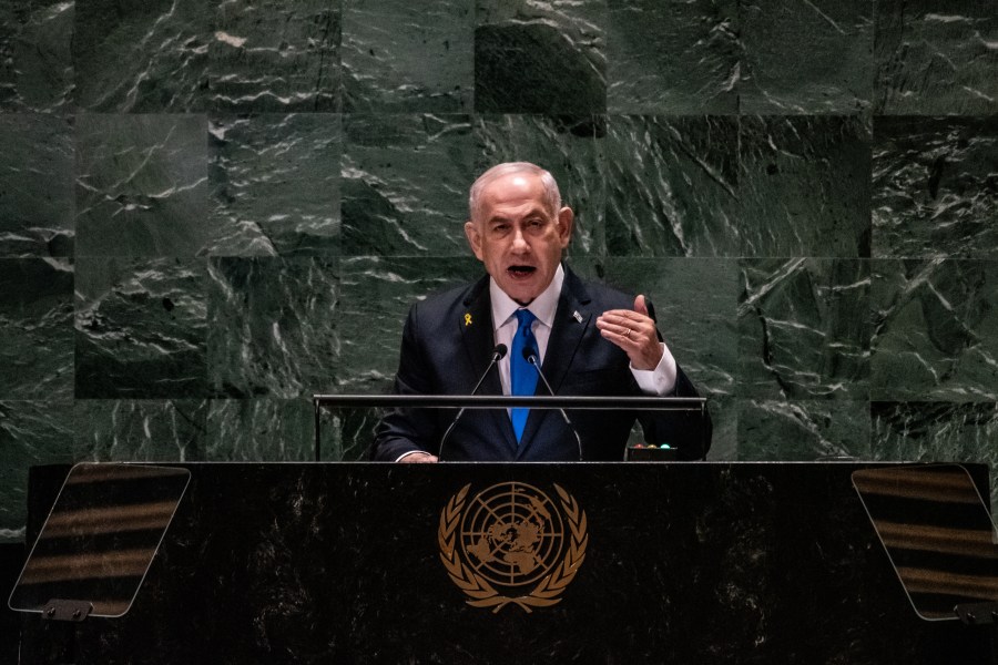 NEW YORK, NEW YORK – SEPTEMBER 27: Israeli Prime Minister Benjamin Netanyahu speaks during the United Nations General Assembly (UNGA) at the United Nations headquarters on September 27, 2024 in New York City. World leaders convened for the General Assembly as the world continues to experience major wars in Gaza, Ukraine, and Sudan, along with a threat of a larger conflict in the Middle East. (Photo by Stephanie Keith/Getty Images)
