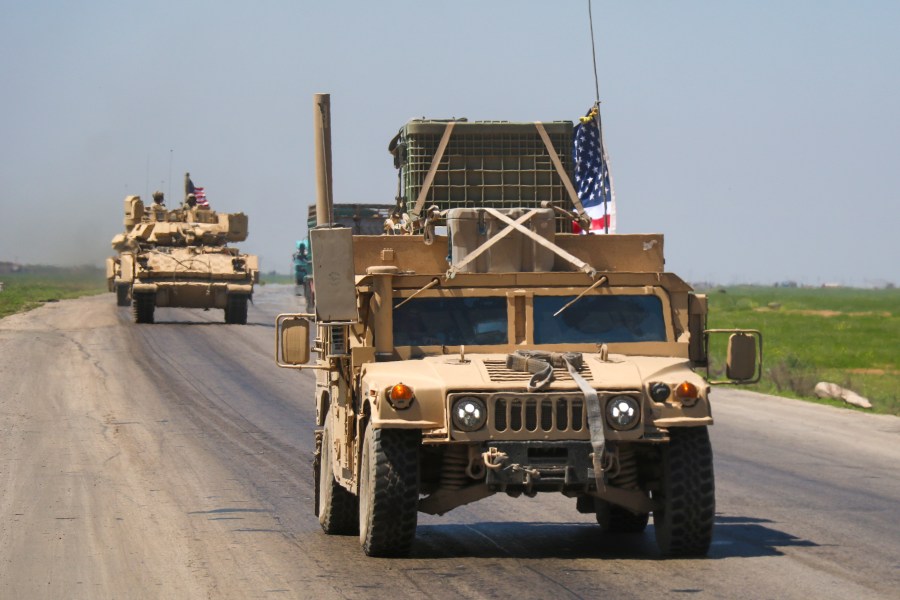 Military vehicles that the US military sent as a reinforcement, convoy to the bases controlled by PKK/YPG in Deir ez-Zor province in Syria, on August 13, 2023. (Omer Al Diri/Anadolu Agency via Getty Images)